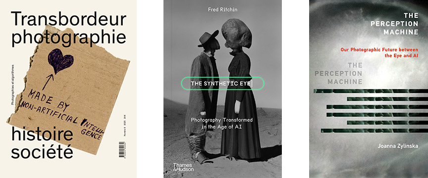 De nombreuses publications traitent du sujet, devenu incontournable, des images produites par l’AI – artificial intelligence. En partant de leurs origines dans les années 1960, la revue Transbordeur consacre 140 pages aux questions soulevées par les images algorithmiques dans la perspective d’une archéologie des médias. Avec dix essais et un entretien, Transbordeur a pour but « d’offrir une perspective historique et critique sur ces phénomènes [liés aux nouvelles technologies de production d’images], et de proposer le cas échéant une critique du modèle économique et des cadres idéologiques qui les sous-tendent. » Toute la revue est parsemée d’œuvres plutôt humoristiques réalisées par le célèbre artiste suisse Thomas Hirschorn.